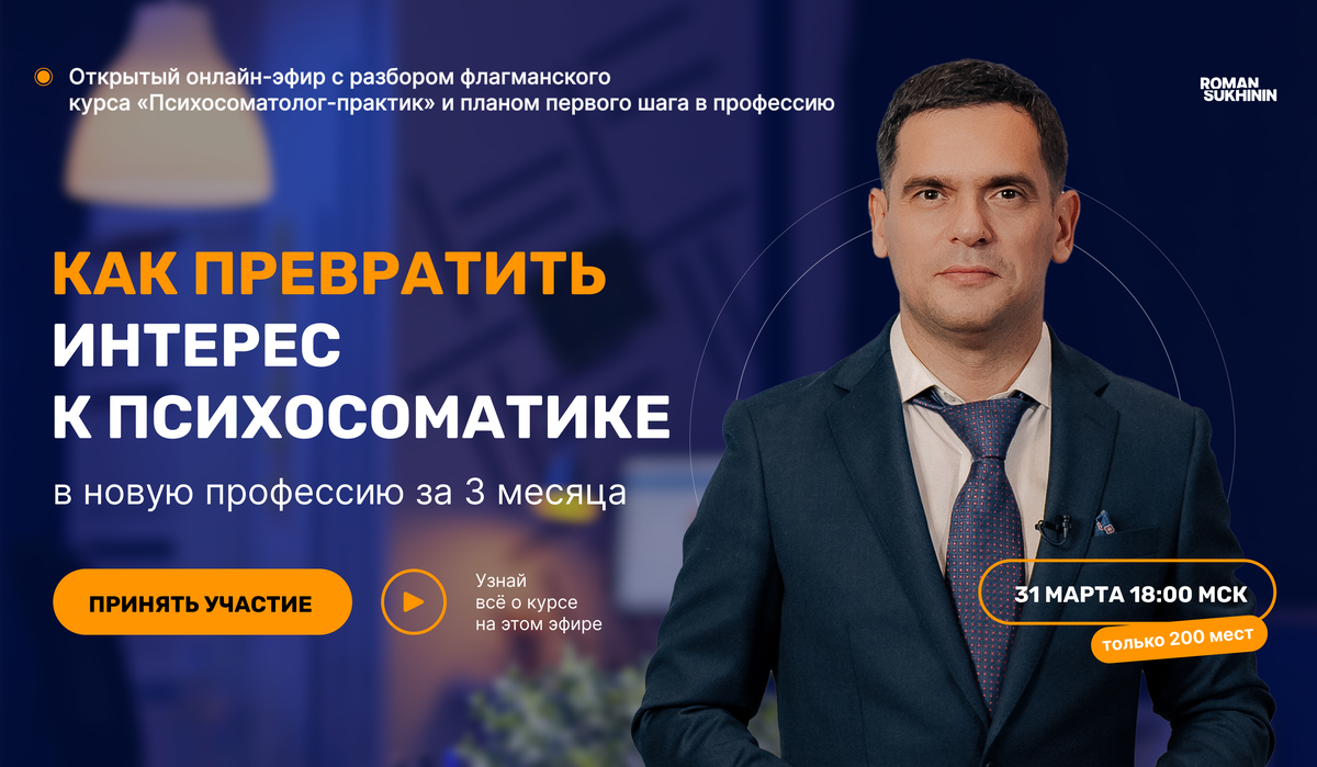 Психосоматика – это инструмент, который все больше пользуется спросом среди помогающих профессий. 31 марта на встрече я расскажу, как стать проводником в этом направлении и начать помогать людям.